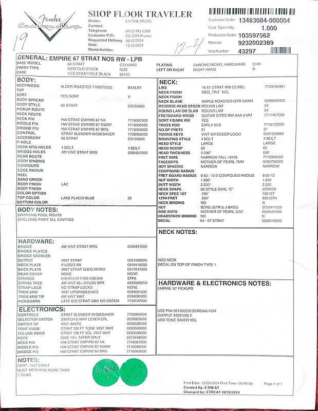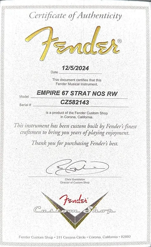 Empire ‘67 Stratocaster - одна из самых востребованных и продаваемых моделей Fender Custom Shop в мире. Разработанная собственными экспертами Empire и созданная мастерами Fender Custom Shop, гитары Empire Music Exclusive ‘67 Stratocaster стали настоящей классикой.