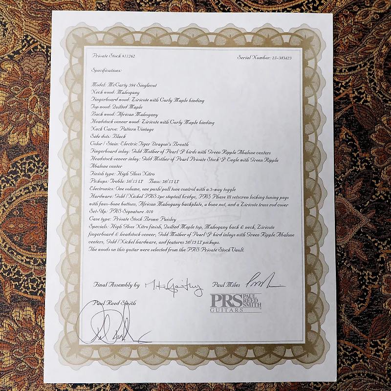 PRS Private Stock McCarty 594 Singlecut Electric Tiger Dragon's Breath