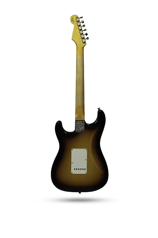 Fender Custom Shop 1960 Stratocaster Journeyman Relic. Корпус из двух частей из ольхи, ручные звукосниматели Texas Special, ладовые порожки 6105, радиус грифа 9,5", гриф формы «oval C» в стиле 60-х с накладкой из палисандра, вес 7,75 фунтов.