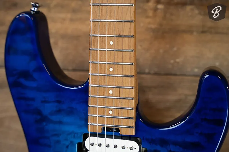 Суперустойчивая шейка из кленового дерева с карамелизацией и графитовыми укрепляющими стержнями обеспечивает абсолютную стабильность независимо от температуры или условий. Лады из карамелизованного клена с составным радиусом 12"-16", аккуратно закругленным краем и инкрустацией из перламутровых точек 4 мм позволяют легко играть риффы. Тонкий, быстрый профиль шейки в форме D и 22 джамбо-лада также повышают скорость и удобство игры. Боковые точки Luminlay будут освещать путь даже на самых темных сценах.