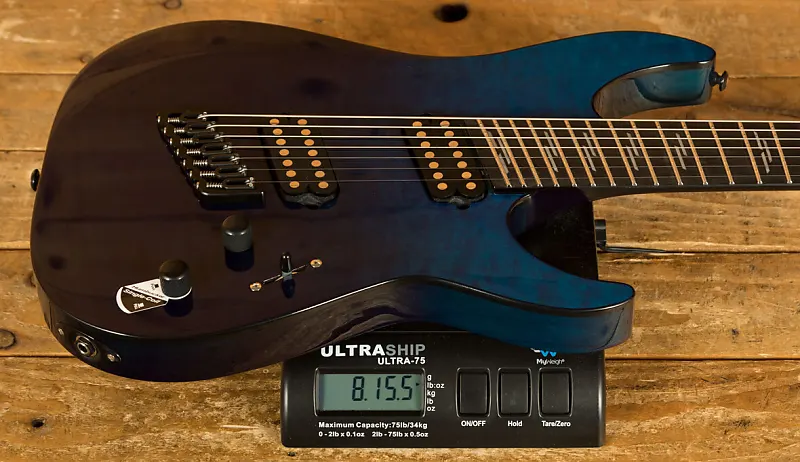Мощные звукосниматели Schecter USA San Andreas 7 Multiscale обеспечивают изобилие насыщенного хамбакерного звучания. Добавьте сюда свободу настройки благодаря фиксированному мосту Hipshot 7-String Multiscale и клегким тюнерам Hipshot Grip-Lock, и вы сможете выразить каждую песню во всей полноте с каждой нотой. Ни одна машина не будет работать идеально без внимания к даже самым мелким деталям - элегантная черная и хромированная фурнитура, перламутровые вставки на ладах и боковые маркеры Luminlay, светящиеся в темноте, завершают этот комплект. выдержит самые быстрые риффы и низкие звуки.