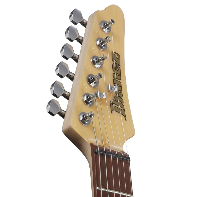 Звукосниматели включают в себя Accord Humbucker - пассивный/керамический на бридже и пару керамических одношпильковых звукоснимателей Ibanez Essentials на среднем и грифовом положении, настроенные на управление в стиле Strat. С включенным переключателем Alter вы получаете доступ к последовательно соединенным звучаниям и другим опциям. Также имеется стандартный тремоло T106 на мосту с комфортными круглыми стальными седлами.