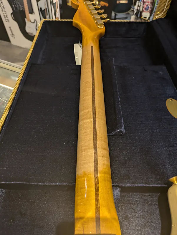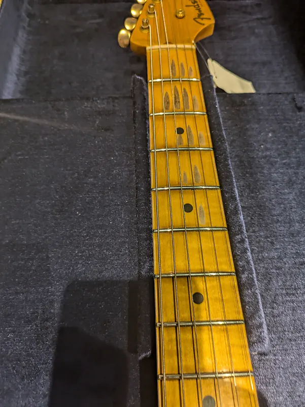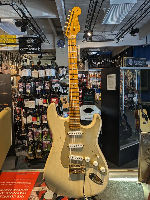 Fender Custom Shop Limited Edition 55 Bone-Tone Strat в цвете Aged Honey Blonde, совершенно новая, ищет своего владельца. Эта гитара отлично ощущается и звучит еще лучше.
