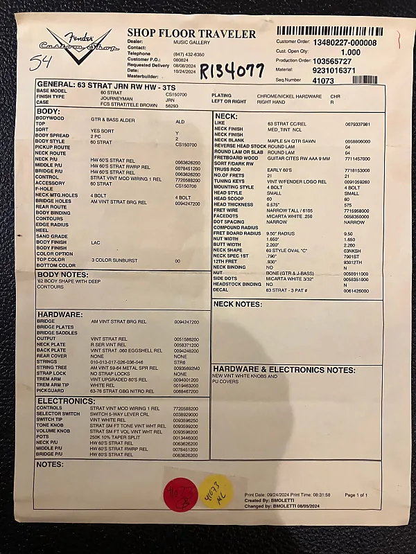 Этот Fender Custom Shop 1963 Stratocaster Journeyman Relic в расцветке 3-Color Sunburst весит 7 фунтов 10 унций. Это совершенно новая гитара, которая включает оригинальный жесткий футляр, сертификат подлинности и гарантию производителя.