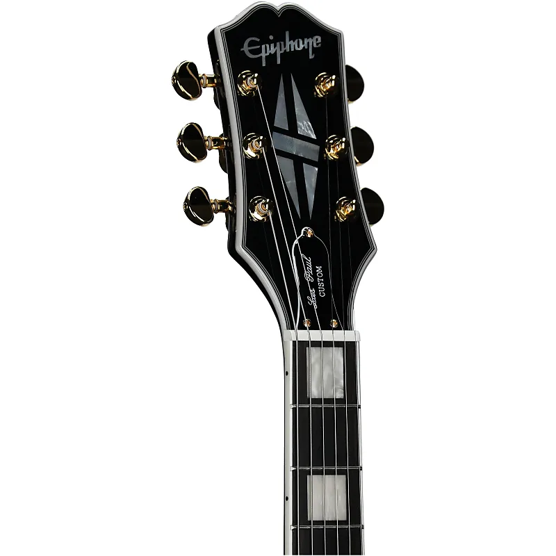 Les Paul Custom является частью коллекции Epiphone Inspired by Gibson и отдает дань уважения классике 1950-х годов, созданной самим Лесом Полом в 1954 году как версия смокинга его революционного электрогитарного шедевра с цельным корпусом. Оснащена традиционным корпусом Custom из цельного махагони, профилем грифа 60-х SlimTaper, грифовой накладкой из эбена с блоками инкрустации, золотым мостом Epiphone LockTone Tune O Matic и хвостовым элементом Stop Bar, парой высоко оцененных критиками хамбакеров Epiphone ProBucker, и инкрустацией в виде разбитого алмаза на головке грифа. Модель Epiphone Inspired by Gibson также оснащена головкой в стиле 60-х Kalamazoo, скатанным грифом для удобного ощущения, костью Graph Tech NuBone, проводкой, соответствующей эпохе, и потенциометрами CTS. Доступны опциональный жесткий футляр или чехол EpiLite.
