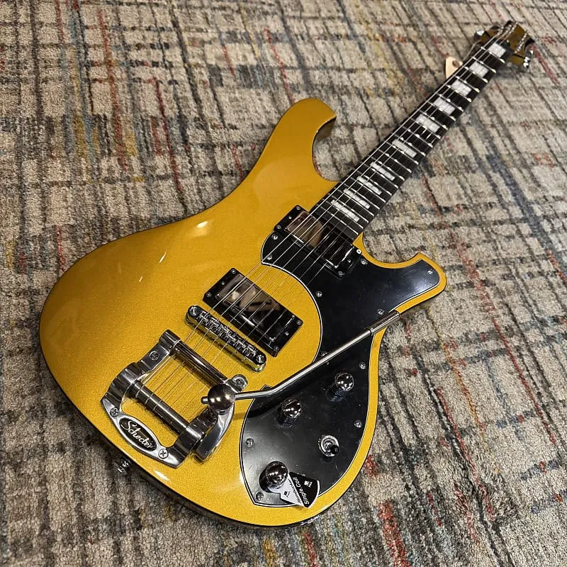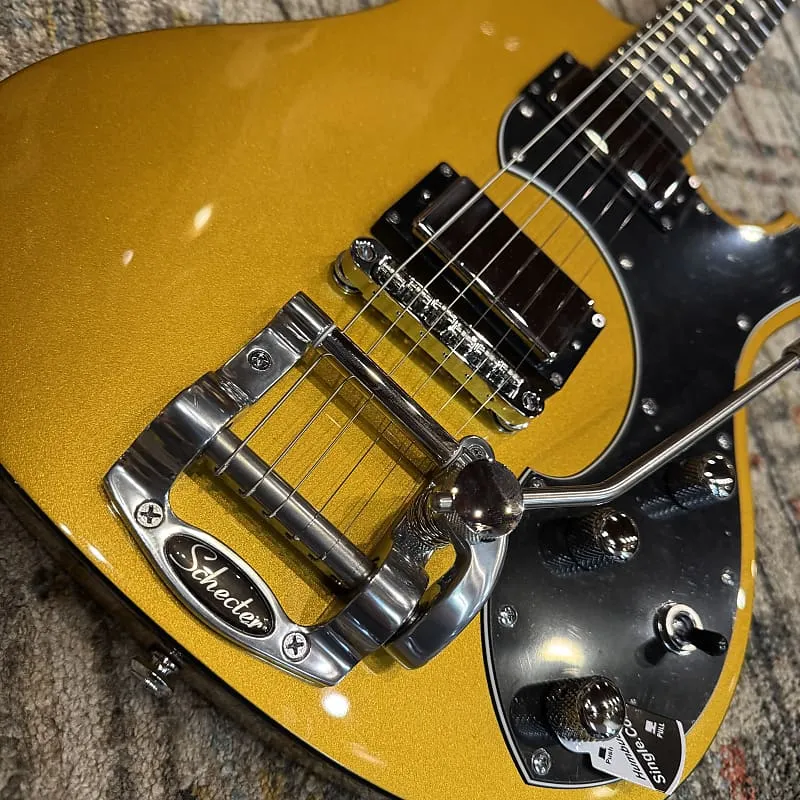 Продается в Metz Music абсолютно новая и супер крутая Schecter Stargazer 6 Vibrato в потрясающем металлическом золотом цвете. Эта гитара имеет винтажное очарование, но современную удобность игры, что делает ее лучшим из обоих миров. Schecter Vibrato чрезвычайно выразительная, позволяя все - от мягкого дрожания до сумасшедших падений звука! Также вы получаете очень универсальные звукосниматели Schecter USA, которые звучат отлично как полноценные хамбакеры или в режиме разделения на синглы. Эта гитара стильная и удобная, и мы настроили ее для наилучшей игры.