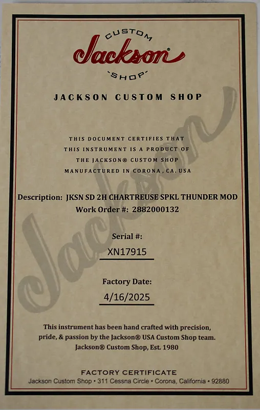 Jackson Custom Shop выпускает гитары мирового класса на заказ, от отличных до великолепных, с тех пор как имя Jackson впервые было нанесено на головку грифа в 1980 году. Jackson с ранних дней существовал только как мастерская индивидуальных заказов. создание уникальных и тщательно изготовленных инструментов для очень требовательной клиентуры. Современный Custom Shop гордо продолжает эту традицию.