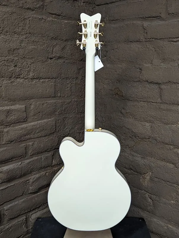 White Falcon источает утонченную элегантность, оснащен золотой фурнитурой - включая культовую хвостовую деталь Cadillac «G» и золотые ручки с драгоценными камнями - гриф, корпус и резонаторные отверстия с золотой окантовкой, сверкающее покрытие из глянцевого белого нитроцеллюлозного лака в винтажном стиле и золотой, толстый старинный пластик для защиты струн с логотипом Gretsch. Культовая модель G6136-55 Vintage Select Edition '55 Falcon Hollow Body с хвостовой деталью Cadillac является квинтэссенцией «Святого Грааля» среди гитар. В комплект входит роскошный жесткий чехол.