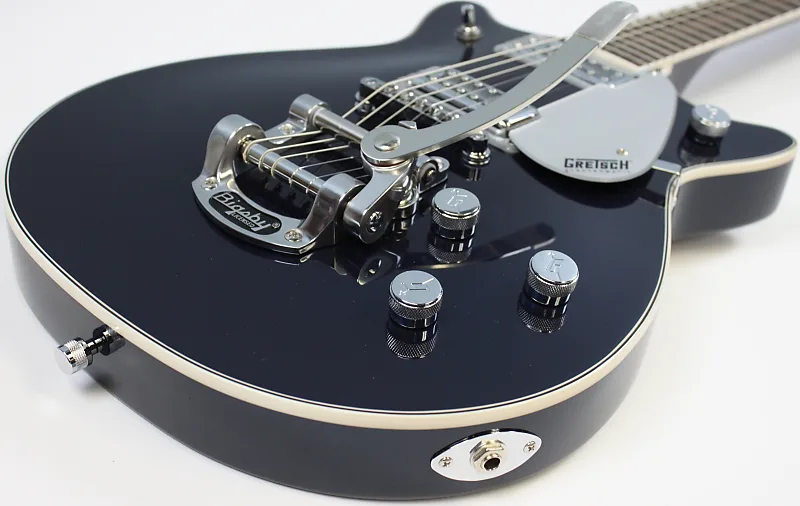 G5232T Electromatic Double Jet предлагает вам основной опыт Jet по потрясающей цене. Резонанс корпуса из камерного красного дерева и изогнутой верхней крышки из клена обеспечивает отличное сочетание тепла и деталей, а звукосниматели Black Top Filter'Tron подчеркивают этот звук. Гибкая электроника включает как отдельные ручки громкости и тембра для каждой струны, так и общую громкость и регулятор тембра, предоставляя полный контроль над вашим звуком. Венцом, в классическом стиле Gretsch, является вибрато Bigsby на задней части, создающее нежный эффект дрожания, когда это требуется.