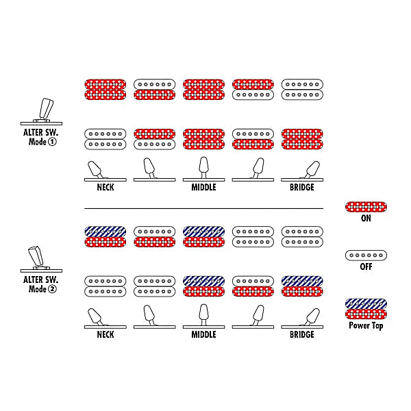 Стандартная электрогитара AZ24S1F оснащена хамбакер-пикапами Ibanez Modern Custom. Эти пикапы разработаны для того, чтобы обеспечить мощный, полнотелый звук, идеально подходящий для рока, метала и других энергичных жанров. Они также обладают очень чистым и четким тоном, что позволяет играть сложные аккорды и быстрые соло, не теряя четкости. Специальная система переключения dyna-MIX10 позволяет получать еще больше оттенков звучания от пикапов, включая звук сингл-коилов, что позволяет исследовать широкий спектр звуковых возможностей.