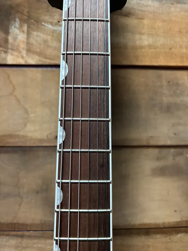 - Лавровый гриф радиусом 12 дюймов с инкрустациями для миниатюр в стиле неоклассики и 22 средними джамбо-ладами