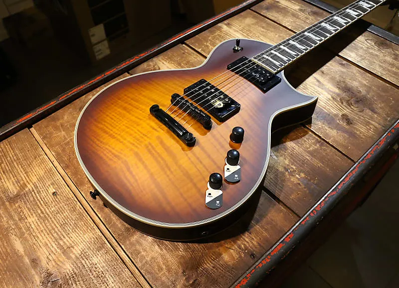 LTD EC-1000 T CTM TSBS Tobacco Sunburst Satin, корпус: махагони, встройка грифа: клен, накладка грифа: эбен, профиль грифа: тонкий U, радиус накладки грифа: 350 мм, 22 струны из нержавеющей стали X-Jumbo, ширина верхнего порожка: 42 мм, длина мензуры: 629 мм, звукосниматель: EMG 81 Humbucker, регулятор громкости, мост: Tonepros Locking TOM и хвостовик, черная фурнитура, LTD запирающиеся колки, струны: Daddario XL110 .010 - .046, цвет: Black Satin