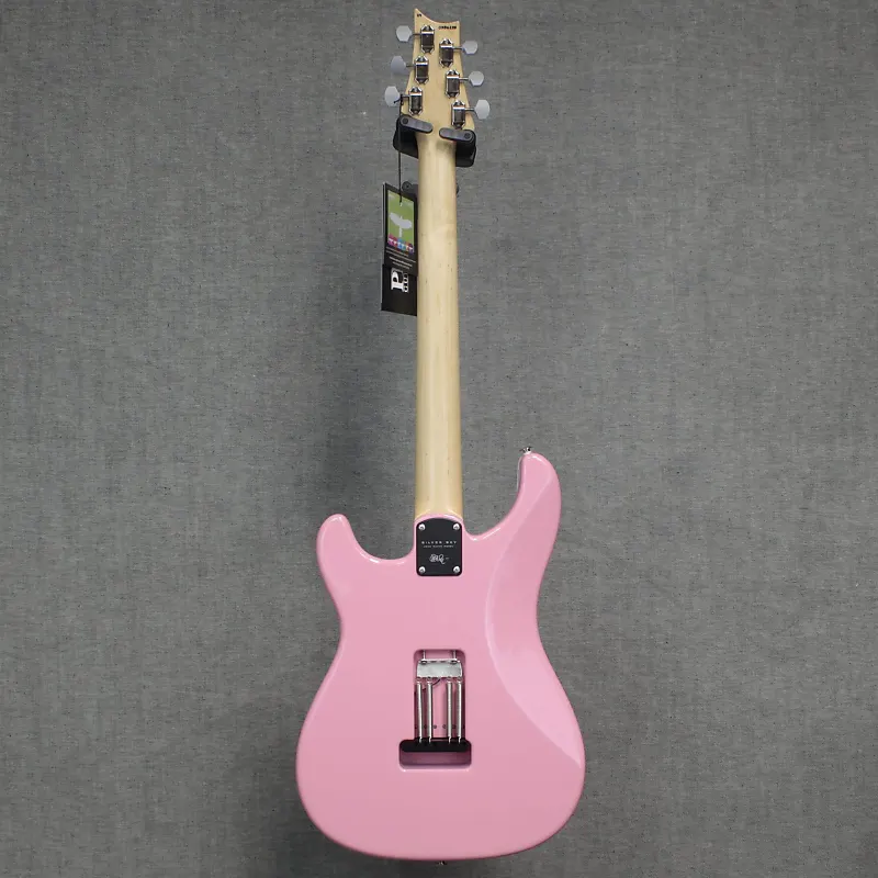 варианты. Форма головки грифа основана на фирменном дизайне PRS, но перевернута как для соответствия стилю игры Майера, так и для сохранения постоянной длины струн за порожком, что облегчает настройку. Колки выполнены в традиционном винтажном стиле с закрытой задней частью, но с блокирующим механизмом PRS. Стальной тремоло блок использует запатентованный дизайн PRS и включает винты Gen III с режущим краем. Установленный заподлицо с корпусом в нейтральном положении, тремоло мост позволяет опускать строй, контакт моста с корпусом увеличен, что делает звучание гитары громче акустически, а это, в свою очередь, улучшает соотношение сигнал/шум для сингл-койлов. Сингл-койлы 635JM звучат очень округло и полно, с музыкальным верхом, который никогда не звучит резко или назойливо.Silver Sky предлагается с опцией грифовой накладки из палисандра или клена. Вариант с кленовой накладкой идет с оригинальной формой грифа 635JM, тогда как вариант с палисандровой накладкой был слегка модифицирован в области плеч, чтобы в руке ощущалась более «округлой». Обе формы грифа были разработаны на основе исследований винтажных инструментов и тестирования гитар на сцене Майером, чтобы найти наиболее комфортный вариант. Радиус накладки на обеих версиях составляет 7,25 дюйма.