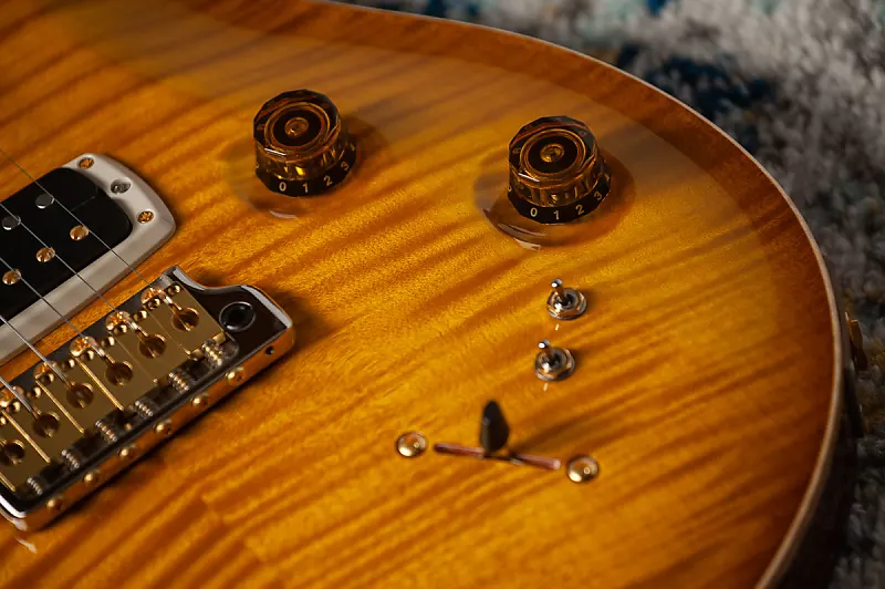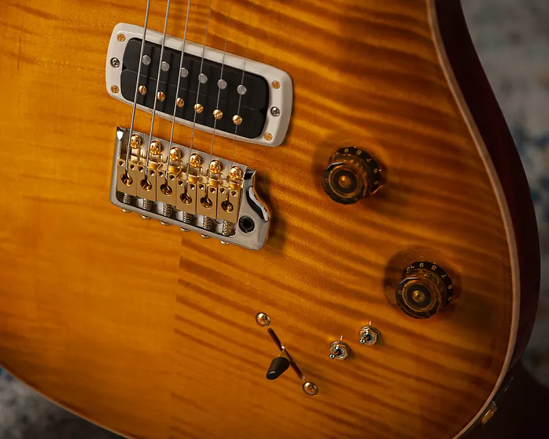 Дополнительные характеристики включают верхнюю дека из клена и заднюю часть из махагони, 22 лад, мензуру 25 дюймов, гриф из махагони с радианной накладкой из палисандра, костяную порожку и запатентованный PRS тремоло Gen III.