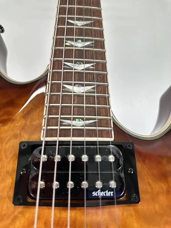 Если вы искали гитару для шоу, которая отлично звучит, имеет удобную игру и при этом не разорит вас, Schecter Omen Extreme-6 FR с системой Floyd Rose полностью отвечает этим требованиям. Тонкая шея из клена формы 'C' с грифом из палисандра плоского радиуса и 24 дополнительными джамбо ладами создает базу для быстрых пассажей и экспериментов с перебором. Ее дополняет потрясающее тело из махагони с верхом из кленового капа «quilt» и глубоким глянцевым покрытием с многослойной кремовой окантовкой, что придает инструменту внушительное присутствие на сцене. Звуково, Omen Extreme-6 FR оснащен мощными хамбакерами Diamond Plus с опцией push-pull для разделения катушки, обеспечивая шесть различных звуков, чтобы вы могли занять свое место в миксе. Модель FR Omen Extreme-6 оснащена системой двойного блокирующего тремоло Floyd Rose Special с проходом струн через корпус, что доставляет радость и вам, и вашей гитаре. В части аппаратуры вы получаете также подходящие черные хромированные ручки и колки, чтобы выглядеть и звучать максимально эффектно на любой сцене.