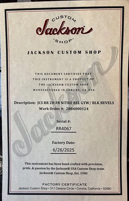 На продажу выставлена абсолютно потрясающая гитара New Jackson Custom Shop Rhoads RR Nitro Relic в цвете Graffiti Yellow с черными кантами. Этот экземпляр был разработан компанией Thunder Road, и мы не могли быть более довольны результатом. Эта модель оснащена практически всеми опциями, о которых мы могли подумать! А какой же эффектный дизайн! Relic Graffiti Yellow всегда выглядит великолепно. Играть на этой гитаре невероятно приятно, и в ней скрыто так много риффов, которые только и ждут, чтобы их сыграли. Сделайте эту гитару своей!
