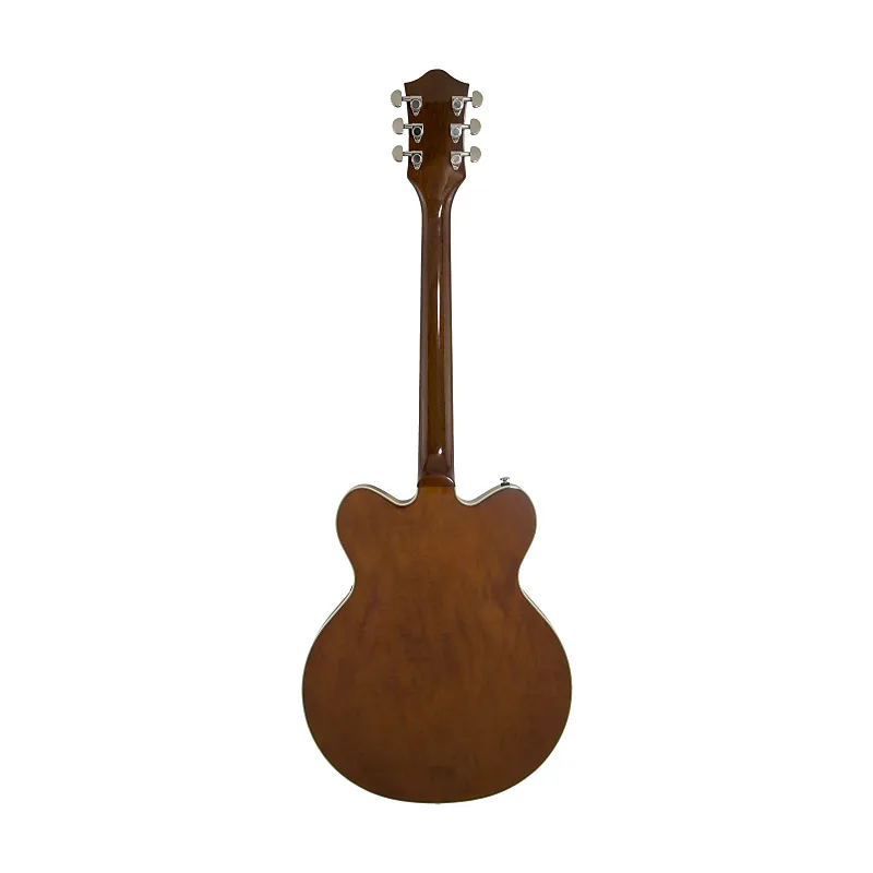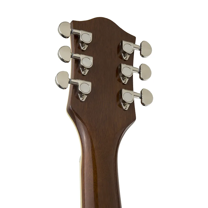 Все классическое привлекающее внимание оформление, которое вы ожидаете от Gretsch, здесь - контроллеры в винтажном стиле, увеличенные F-образные резонаторные отверстия для повышенной акустической проекции, элегантная состаренная белая окантовка с улучшенным файнлингом, стильная никелевая фурнитура, трехслойная черепаховая накладка на гриф и арочная многослойная кленовая конструкция.
