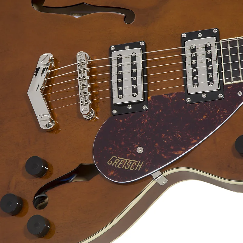 Секрет звука Streamliner заключается в двух вещах - хамбакере Broad’Tron BT-2S и центральном блоке из ели. Специально разработанный для коллекции Streamliner, высоковыходной хамбакер Broad’Tron обеспечивает улучшенную четкость с более плотными басами для насыщенного нижнего регистра, чистых высоких нот и насыщенного среднего диапазона. Легкий центральный блок из ели идет по всей длине корпуса, укрепляя верхнюю деку и устраняя нежелательную обратную связь, обеспечивая производительное звучание на концертах с повышенной громкостью. Звуковая мощь Streamliner управляется и формируется с помощью традиционной схемы управления - регуляторами громкости грифа и бриджа, главным регулятором тона, главным регулятором громкости и переключателем трех позиций для звукоснимателей. Быстроиграемый гриф с радиусом 12" из лавра гриф с элегантной инкрустацией Big Block из перлоида и 22 средними джамбо-ладовыми ступенями располагается на шее с белой окантовкой и тонким профилем «U», идеально подходящем для работы с аккордами или зажигательными рифами. Наслаждайтесь стабильной настройкой благодаря стильному стабилизатору Gretsch V-Stoptail, закрепленному бриджу Adjusto-Matic и верховому порожку из синтетической кости.