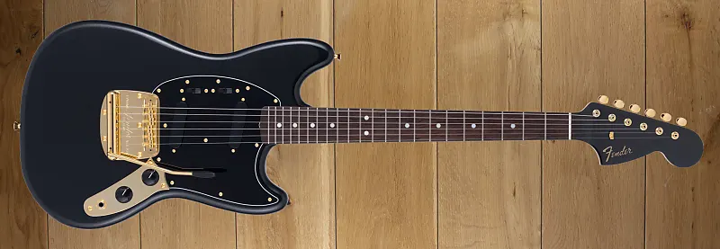 Fender Made in Japan 2025 Коллекция Ограниченного Выпуска Mustang в цвете Black Pearl с золотой фурнитурой
