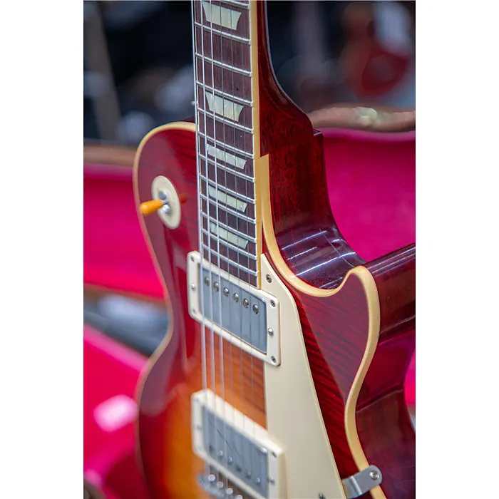 Откройте для себя произведение искусства, не похожее ни на одно другое Gibson Custom Shop 60th Anniversary Les Paul Standard Reissue 1959 - это не просто дань уважения бесценным оригинальным моделям, а настоящая клонированная версия. От размеров, сканированных лазером, до химически воссозданного пластика - каждый элемент воспроизведен с невероятной точностью. Эта гитара представляет собой итог многолетней работы команды экспертов Custom Shop, стремящейся привнести точность и подлинность в руки фанатов. Это определение «крутости» и лучшее воплощение Les Paul Standard 1959 года с момента начала выпуска исторических переизданий более двадцати пяти лет назад. Ее отделка Ultra Light Aged выполнена мастерами Murphy Lab, имитирующими десятилетия легкого износа, придавая уникальность оригиналу из золотой эпохи Gibson. Технические характеристики Корпус: Les Paul Верхняя дека: двухсекционная кленовая с фигурной текстурой, соединение на клее Hide Glue Задняя дека: цельная облегченная махагони Окантовка: один слой Royalite Отделка корпуса: стареющий нитроцеллюлозный лак Murphy Lab Лак Форма корпуса: 50-х годов, округлая, средняя C Мензура: 628,65 мм / 24,75 дюйма Материал грифa: индийский палисандр Радиус накладки: 304,8 мм / 12 дюймов Материал шеи: цельный махагон Количество ладов: 22 Лады: исторический средний джамбо Материал порожка: нейлон Ширина порожка: 42,85 мм / 1,687 дюйма Инкрустация: трапециевидные накладки из нитрата целлюлозы Соединение корпуса и грифа: длинный шип, соединение на животном клее Отделка: никель; имитация легкого старения Murphy Lab Мост: ABR-1 Материал моста: латунь с никелевым покрытием Струнодержатель: облегченная алюминиевая планка Колки: Kluson Single Line, одинарное кольцо Звукосниматель: многослойная целлулоидная ацетат-бутира Гриф: подлинная 1950-х безтрубка Крышка подстроечного стержня: подлинная двухслойная с уступом Регуляторы: золотые офицерские шляпы из бутирата Регулятор выбора звукоснимателя: янтарный каталин Выбор звукоснимателя: 3-позиционный Switchcraft Выходной разъем: 1/4” Switchcraft Толщина струн: .010, .013, .017, .026, .036, .046 Чехлы: коричнево-розовый Lifton Reissue с 5 защелками Аксессуары: сертификат подлинности Перевыпуск задней панели переключателя в корпусе