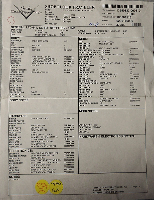 Fender Custom Shop Ltd '64 L Series Stratocaster Jrn Relic (7 фунтов 13 унций)