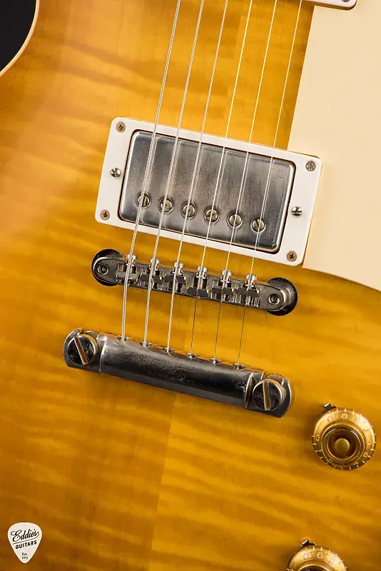 Аппаратура и отделка соответствуют эпохе и выполнены с исключительной тщательностью. Мост ABR-1 и легкий алюминиевый стопера-чейн обеспечивают надежную настройку и передачу звука, а тюнеры Kluson, никелированная фурнитура и золотые ручки из бутиратного пластика дополняют эстетику. Звукосниматели - это парный комплект непокрытых Custombucker Alnico III хамбакеров, обеспечивающих теплый, детализированный звук с открытой и динамичной отдачей - именно так, как должен звучать превосходный burst.