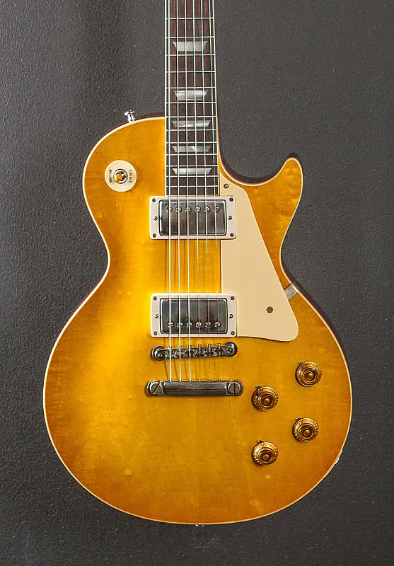 Lemon Burst, отделка нитроцеллюлозным лаком VOS, верх из цельного клена из двух частей, корпус из цельного махагона, длинное шиповое соединение грифа и конструкция на горячем клее, округлый медиум С-профиль грифа 50-х годов из махагона, накладка на гриф из индийского палисандра с радиусом 12 дюймов с трапециевидными вставками из старого целлюлозного нитрата и узкими высокими ладами, длина мензуры 24,75 дюйма, ширина верхнего порожка 1,69 дюйма, кастомные звукосниматели Custombucker Alnico III для бриджа и грифа без пропитки, 3-позиционный тумблер переключение с помощью регуляторов громкости и тембра для каждой звукоснимателя, бридж ABR-1 tune-matic без проводов и легкий алюминиевый задний струнодержатель, колки Kluson с одной линией/одним кольцом, 9,0 фунтов, в комплекте с жестким кейсом Lifton