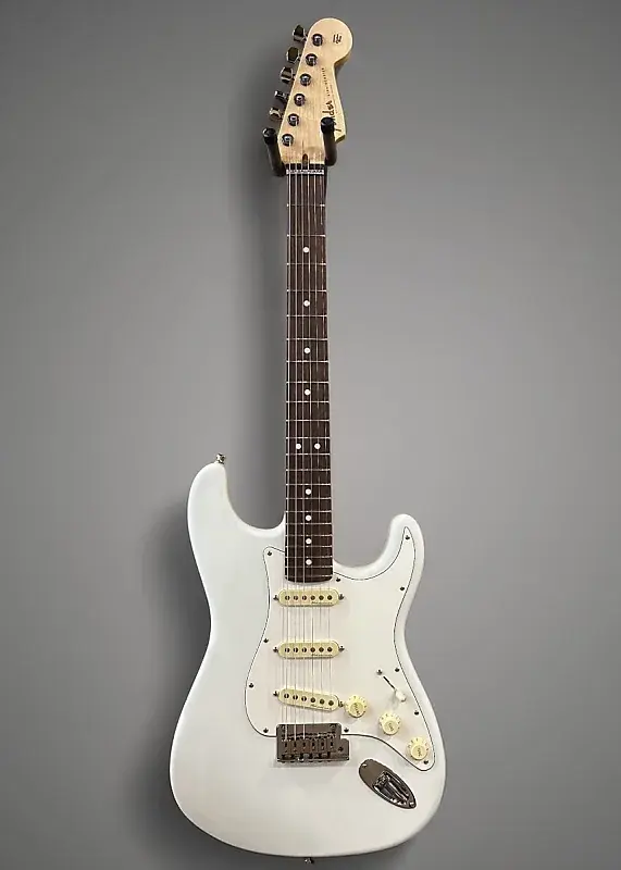 Olympic White, уретановая отделка корпуса NOS, корпус из ольхи с контурной пяткой, тонкий C-образный кленовый гриф с палисандровым грифом радиусом 9,5 дюйма и средними джамбо-ладами, длина мензуры 25,5 дюйма, ширина порожка 1,6875 дюйма, 0,820 на 1-м ладу и 0,920 на 12-м ладу, звукосниматели Fender Hot Noiseless с одной катушкой Strat, 5-позиционное переключение с общей громкостью, тон 1. (нековый звукосниматель) и тембр 2. (регулировка мостика/среднего звукоснимателя), двухточечное синхронизированное тремоло американской серии с колодками из нержавеющей стали, роликовым порожком LSR и колками с блокировкой Sperzel Trim-Lok, 3,7 кг, в жестком футляре
