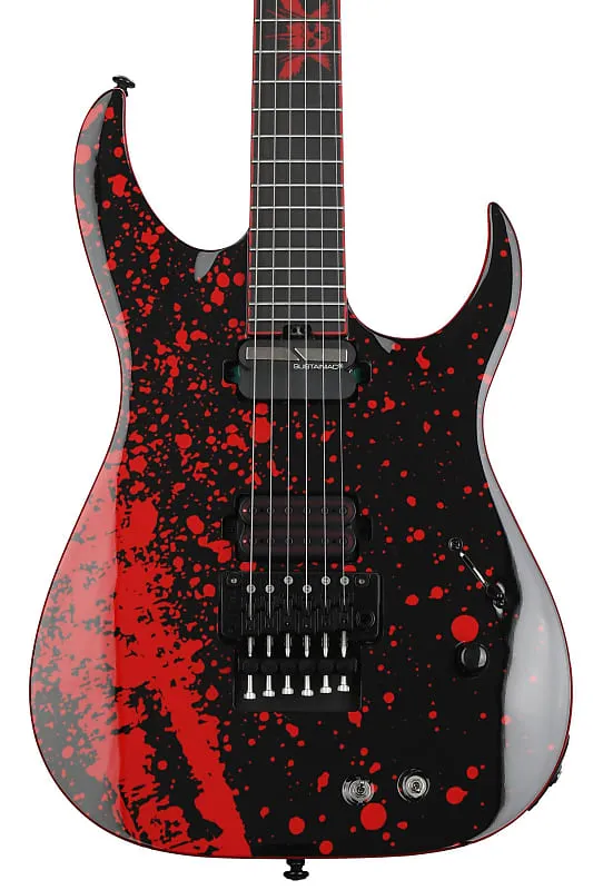 Электрогитара с цельным корпусом из ясеня, гриф из клена, накладка из эбена, 1 хамбакер, 1 звукоснимающий Sustainiac и тремоло Floyd Rose - Obsidian Blood.