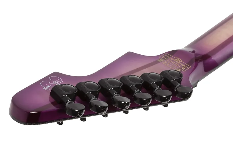 Гитара Nikki Stringfield A-6 FR-S от Schecter является фирменной моделью популярной гитаристки из группы Iron Maidens. Она сочетает в себе любимые особенности Никки. Верхняя дека из кленового шпона с ярким красным градиентом. Отличительная корпусная часть из болотного ясеня с окантовкой из многослойного углеродного волокна. Трехсекционная кленовая шея оснащена фирменным соединением шеи Schecter ultra access и накладкой из черного дерева с компаундным радиусом, сложной инкрустацией и светящимися в темноте боковыми позицонными маркерами.