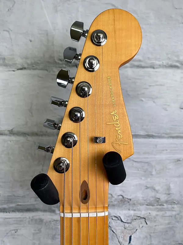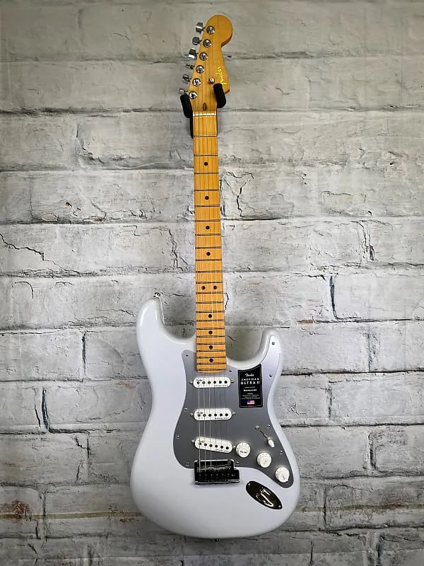 Под капотом находится трио звукоснимателей Ultra II Noiseless Vintage Strat, которые обеспечивают все: от сладкой кристальной чистки до жгучие соло, все без намека на гул. Наш запатентованный переключатель S-1 умно разблокирует дополнительные конфигурации звукоснимателей для еще большего разнообразия тонов. Дополнительные готовые к дороге функции включают 2-точечный американский синхронизированный тремоло American Ultra с съемной рукой, полированные седла из нержавеющей стали, блок из холоднокатаной стали, люксовые блокирующие колки, мягкие кнопки и однослойную анодированную алюминиевую накладку на корпусе.
