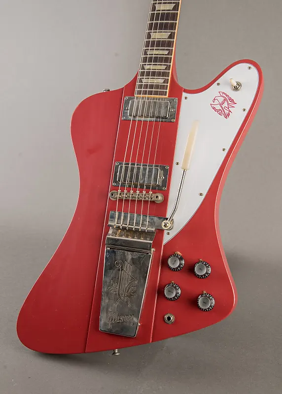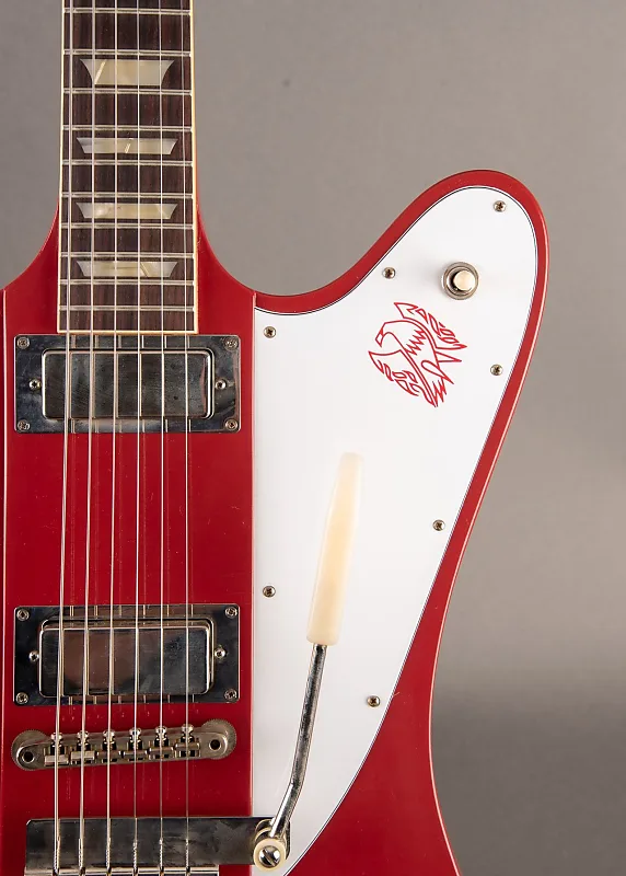 От Gibson: "Когда Gibson наняла знаменитого автомобильного дизайнера Рея Дитриха для создания радикальной новой гитарной модели с цельным корпусом, началась история рок-н-ролла. Благодаря своей асимметричной форме, конструкции «neck-through» и мощным мини-хамбucker’ам, гитара '63 Firebird V мгновенно стала классикой. Gibson Custom Shop гордится представлением этой точной реплики винтажного оригинала, которая использует аутентичные контуры, размеры и методы изготовления для невероятного опыта владения и игры. Она оснащена обработкой Ultra Light Aging, выполненной искусными мастерами Murphy Lab. Обработка Murphy Lab Ultra Light Aged в сочетании с слегка состаренной фурнитурой имитирует десятилетия легкого игрового износа, придавая уникальный характер, атмосферу и ощущение оригинального экземпляра из Золотой Эры Gibson".