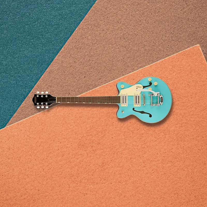 Модель G2655T Center Block Jr оснащена меньшим кленовым корпусом с арочной формой и новой конструкцией центрального блока под капотом. Новый центральный блок разработан для сочетания легкости и комфорта с полным, насыщенным звуком и повышенной присутствующей частью, что обеспечивает улучшенную атаку и сустейн, а также отличное подавление обратной связи, в удобном формате, который не будет вас утяжелять.