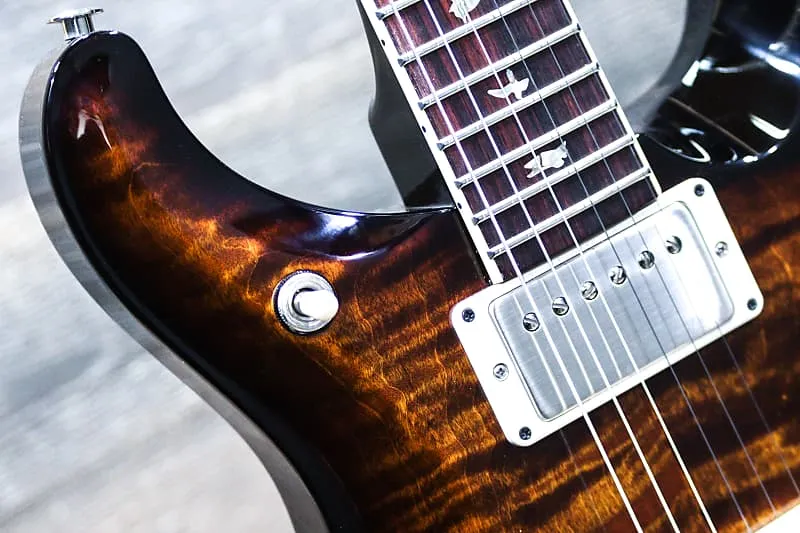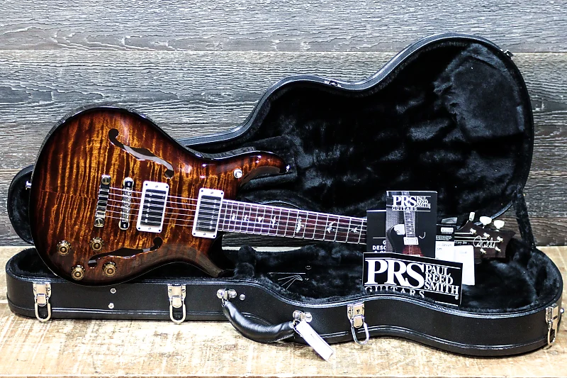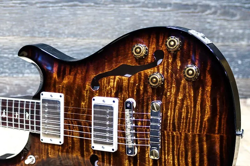 Продается электрогитара PRS McCarty 594 Hollowbody II Black Gold Wraparound Burst с кейсом - #0384918! Мы являемся Авторизованным дилером гитар PRS! Этот прекрасный инструмент совершенно новый / никогда не выставлялся и поставляется с полной гарантией производителя*. После осмотра мы заметили несколько мелких царапин, следов и небольших дефектов покрытия здесь и там (см. фотографии с 13 по 21), но абсолютно ничего серьезного. Комплект поставляется с аксессуарами в жестком кейсе.