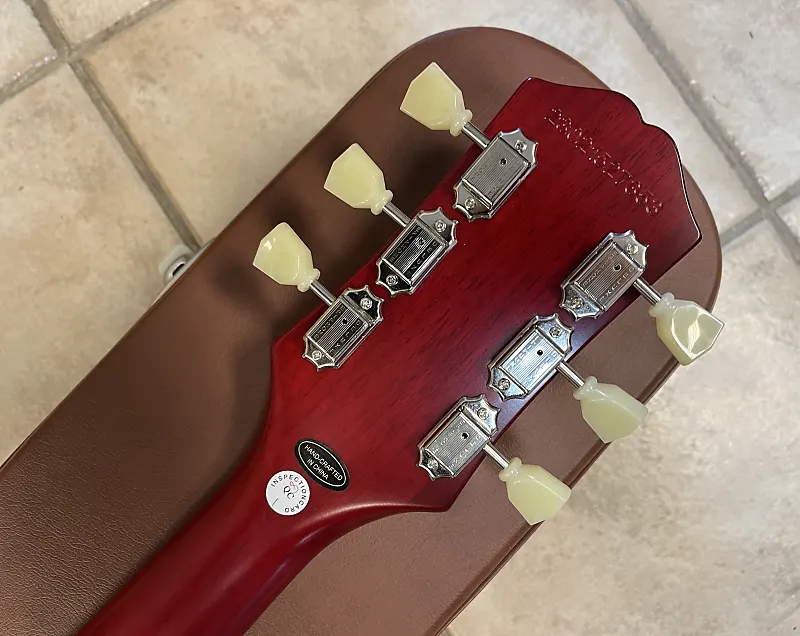 Созданный в партнерстве с Gibson Custom Shop, лимитированная версия 1959 Les Paul Standard является потрясающей реконструкцией редкой винтажной классики от Epiphone. Оснащен корпусом из махагони с верхней дека из клена с шпоном AAA клена, удобным профилем шеи 1959 года ручной работы с длинным шипом, состаренной отделкой, хамбакерами Gibson USA BurstBucker 2 и 3, переключателем и разъемом Switchcraft, потенциометрами CTS, проводкой в стиле 50-х годов, конденсаторами Mallory, невырезанным звукоснимателем, новыми винтажными колками Epiphone Deluxe и винтажным коричневым жестким футляром. Также поставляется с металлической медалью Epiphone Limited Edition на переключателе. Доступен в вариантах Aged Dark Burst и Aged Dark Cherry Burst.