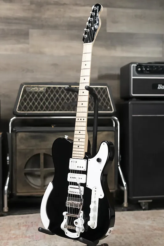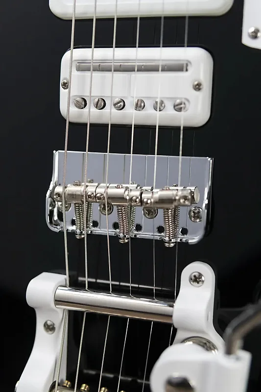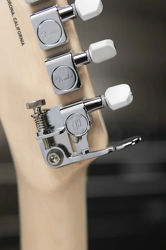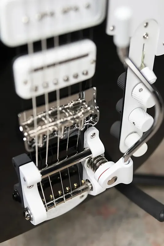 Другие заметные особенности включают мост с тремя седлами и компенсированными стальными седлами, вибрато Bigsby B5, запаянные тюнеры Fender с расширителем Hipshot Xtender для мгновенного перехода в строй Drop-D и уникальную белую порошковую фурнитуру. Элегантная белая подлокотная панель, черные точечные накладки с уникальным 3-точечным дизайном на 12-м ладу и открытый 21-й лад завершают смелый внешний вид гитары.