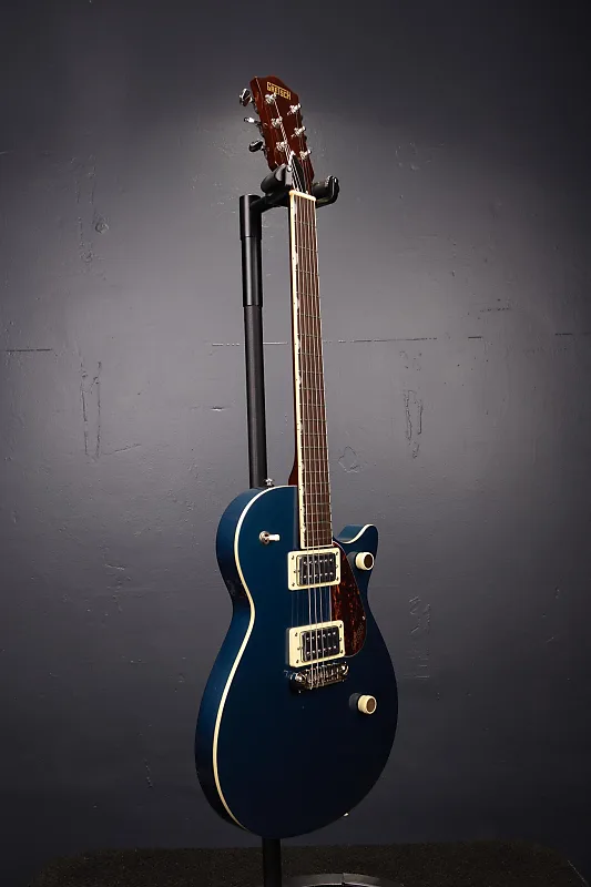 Gretsch Streamliner Jet Club Single-Cut в отделке Dark Denim представляет собой электрогитару с цельным корпусом, которая сочетает классическую эстетику Gretsch с современными характеристиками. Созданная для гитаристов, ищущих мощное звучание и стиль, эта модель предлагает улучшенную сустейн, сниженный уровень фидбэка и разнообразные тональные возможности.
