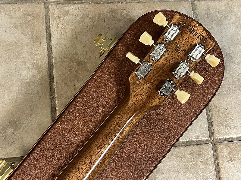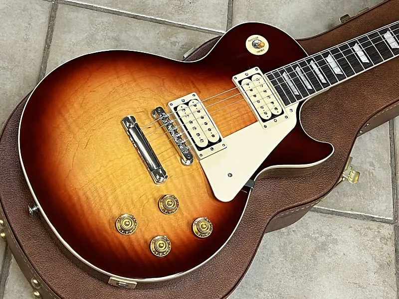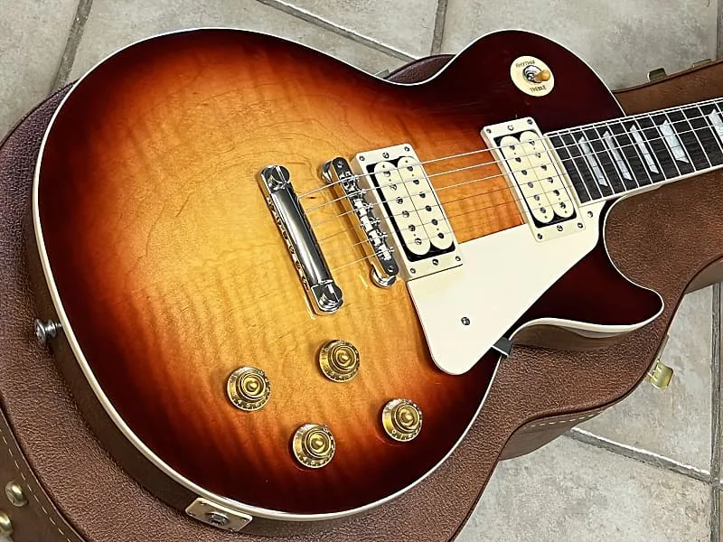 С ограниченным тиражом и индивидуально распыленными узорами, эта модель является мечтой коллекционера и сокровищем для музыканта. Ненавязчивое старение отделки Vintage воспроизводит вид естественно состарившихся гитар, добавляя аутентичность ее внешнему виду. Корпус из цельного красного дерева без облегчений и верх из фигурного клена AA обеспечивают ту же глубину тона и визуальную привлекательность, которые ожидаются от гитар высшего класса Les Paul. Как для музыкантов, так и для коллекционеров, эта гитара сочетает исключительное мастерство и эксклюзивность, обеспечивая ее выделение как визуально, так и по звучанию.