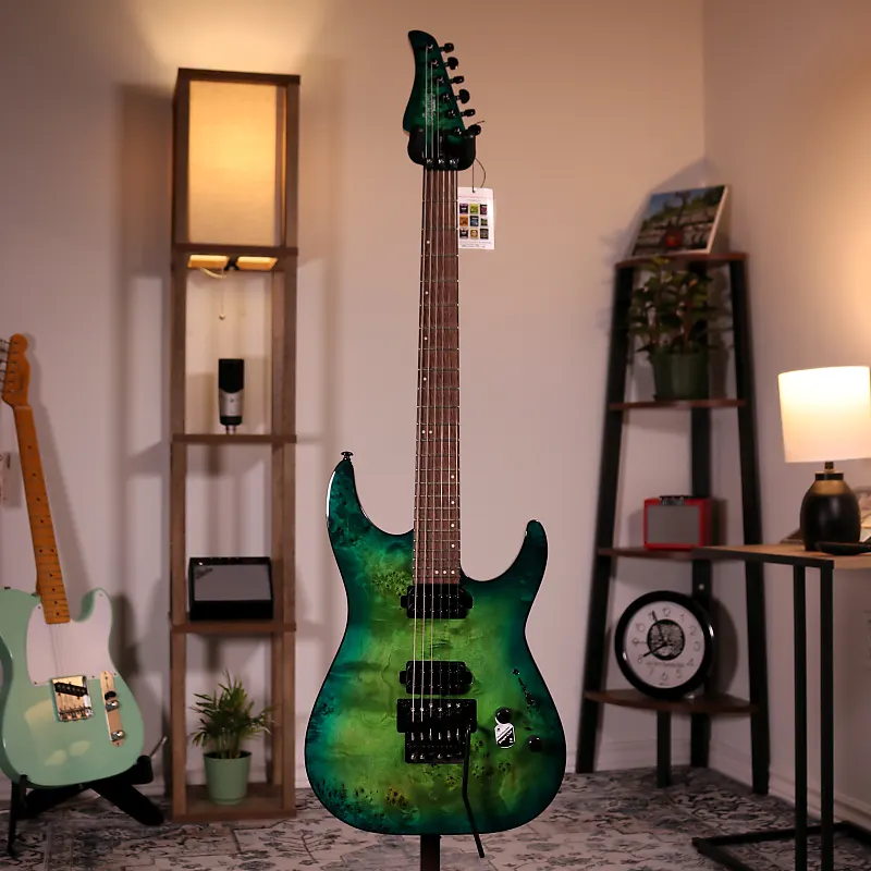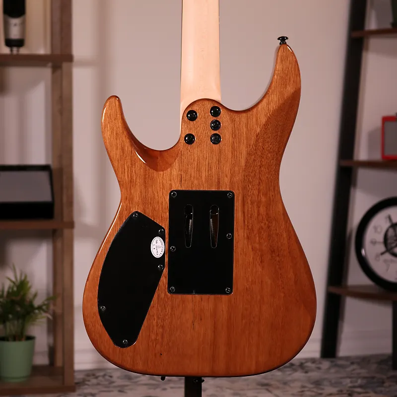 Schecter C-6 FR Pro - это ультрасовременная электрогитара, которая идеально сочетает в себе мощь, универсальность, красоту, комфорт и доступность - в равной мере. На роскошном корпусе из красного дерева красуется потрясающая верхняя дека из капового шпона, а C-6 Pro оснащена быстрым ультратонким грифом 'C' из клена с конструкцией bolt-on, придающим инструменту яркий и энергичный характер. Усиленный углеродными стержнями, гриф этой гитары чрезвычайно жесткий и гораздо меньше подвержен деформации в различных климатических условиях. Инструмент оснащен парой хамбакеров Schecter Diamond Decimator. Обеспечивая большой выход, эти звукосниматели подходят для современных высокогейновых тембров и обеспечивают отличную четкость в низком регистре. Но это не однофункциональные звукосниматели: эти хамбакеры можно переключать на одиночную катушку с помощью функции push/pull на регуляторе громкости, что идеально подходит для кристально чистого звучания.