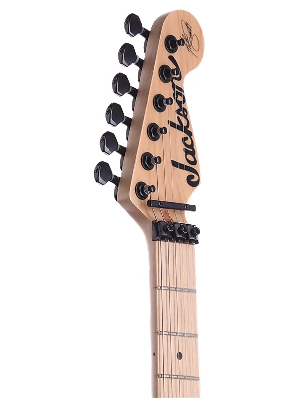 Электрогитара Jackson Adrian Smith Signature SDX имеет форму двойного выреза San Dimas Soloist с корпусом из древесины бассау. Эта гитара с плоской декой не имеет окантовки или накладок на верхнюю часть, а также оснащена прикрученной кованой гриф-мелкой кленовой гитарой, грифом с кленовой накладкой с комплексным радиусом, конфигурацией HSS, тремоло-системой Floyd Rose Special и многим другим!