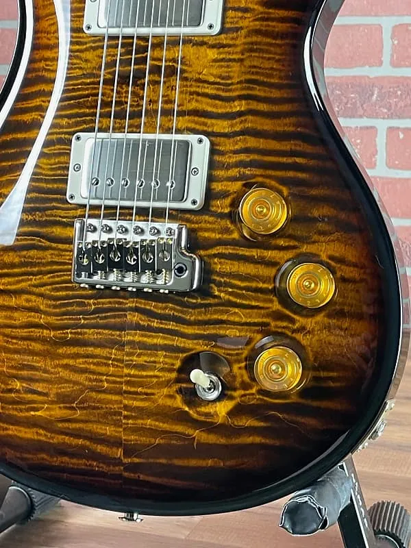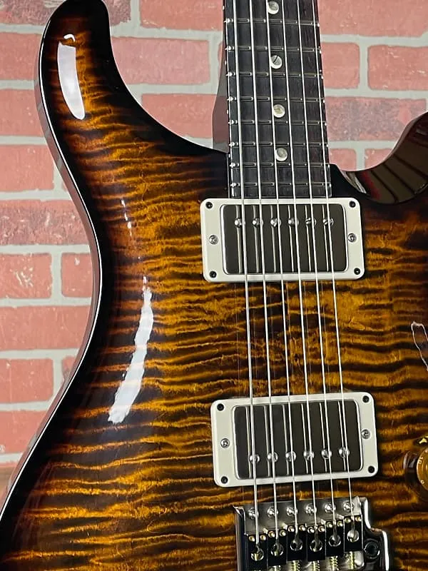 Эффектные инкрустации Moon и отделка Black Gold Wraparound Burst создают отличительный визуальный эффект, выделяющий эту фирменную модель на фоне стандартных моделей PRS.