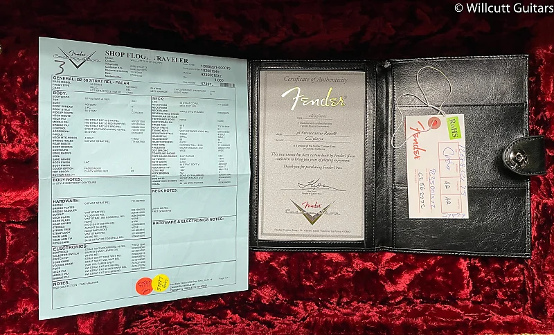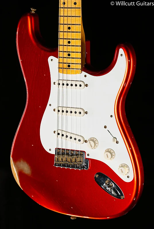 Сделанные вручную звукосниматели Fat ’50s от Custom Shop (с обратной намоткой/обратной полярностью среднего звукоснимателя) соединены с проводкой Vintage Modified #2 с цепью Tone-Saver и пятипозиционным переключателем, создавая насыщенный, сбалансированный тон на любой громкости. Другие особенности включают однослойный перламутровый защитный щиток, винтажные элементы Custom Shop синхронизированное тремоло, тюнинговые механизмы в винтажном стиле, кость для наковальника, и струнодержатель в форме крыла. Также включает эксклюзивный жесткий кейс, ремень и сертификат подлинности.