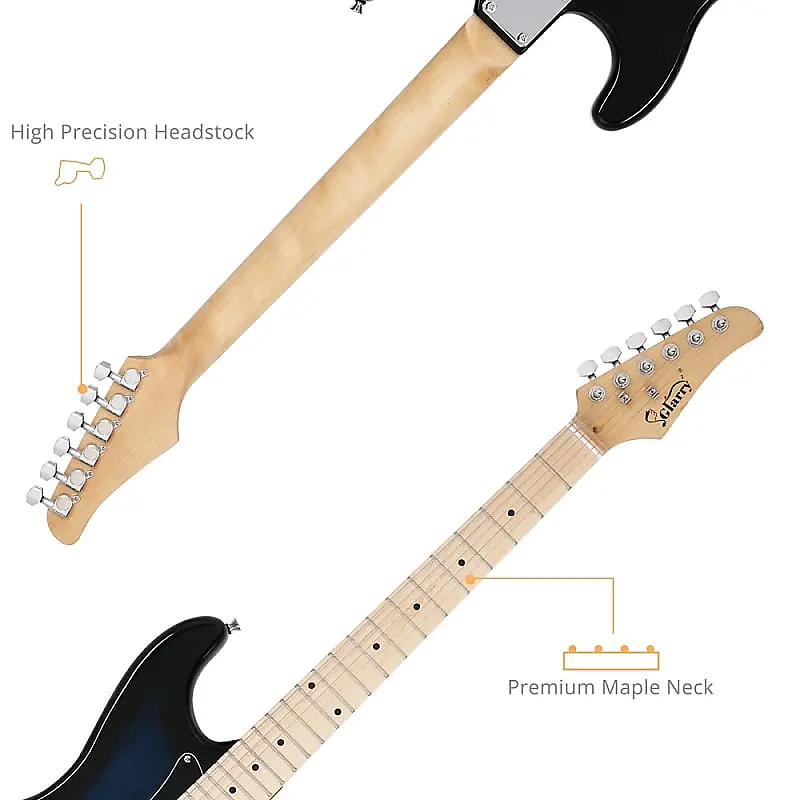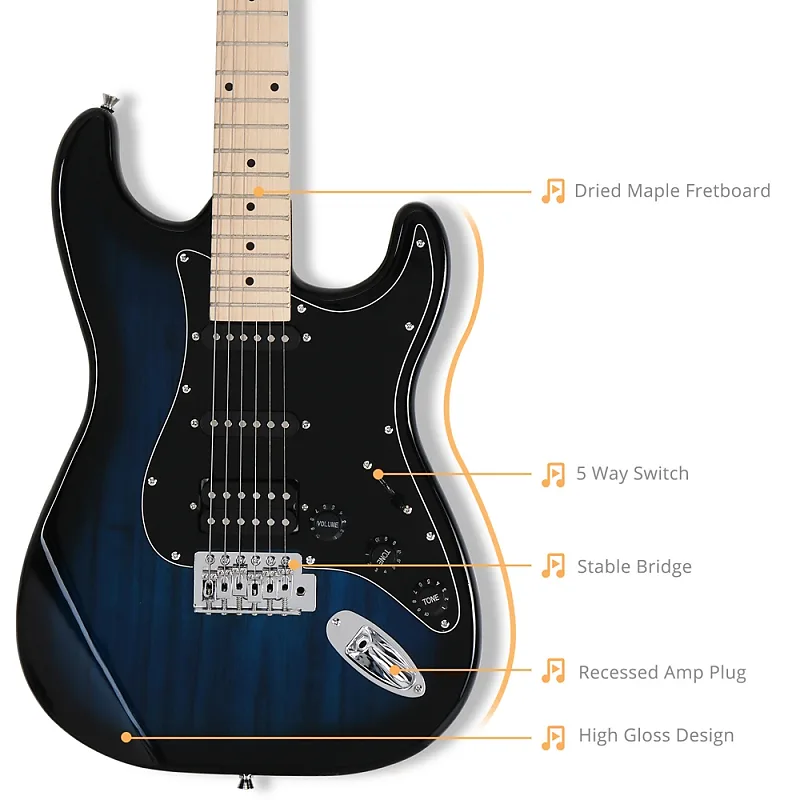 Электрогитара Glarry GST HSS с звукоснимателями и усилителем 20 Вт, синий