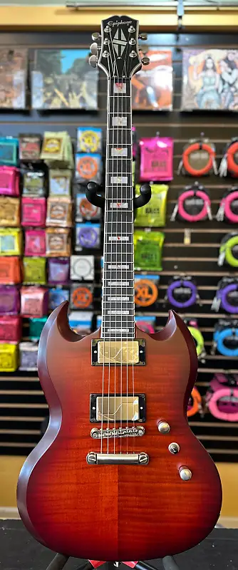 Эпифон Пропхеси SG сочетает в себе высокопроизводительные функции и классический дизайн SG, делая его отличным выбором для современных прогрессивных гитаристов. Корпус из красного дерева покрыт 3/4-дюймовой кленовой накладкой и красивой шпоновой панелью из флэйм-клена AAA для выбранных цветов, а также имеет более тонкое покрытие Aged Vintage Gloss. Асимметричная шея из красного дерева SlimTaper оснащена грифом из черного дерева с 24 ладами и джамбо-ладу, инкрустацией в виде блоков и треугольников из перламутра/абалона с выбором абалона, гармонирующим с цветом корпуса, колками Grover Locking Rotomatic с никелевым покрытием и костяной гайкой Graph Tech NuBone черного цвета. Эпифон Пропхеси SG оснащен фурнитурой с никелевым покрытием, кнопками крепления ремня PosiLok и парой фирменных звукоснимателей Fishman Fluence с тремя режимами звучания, которые выбираются с помощью ручек громкости и тона с функцией push/pull - высокий гейн, современный активный высокоэффективный хамбакер с обеими ручками в нажатом положении, классический хамбакер в стиле Patent Applied For при выведенной ручке тона, и искрящиеся, оптимизированные звуки одиночной катушки при вытянутом регуляторе громкости. В комплект входит премиальный футляр для гитары.