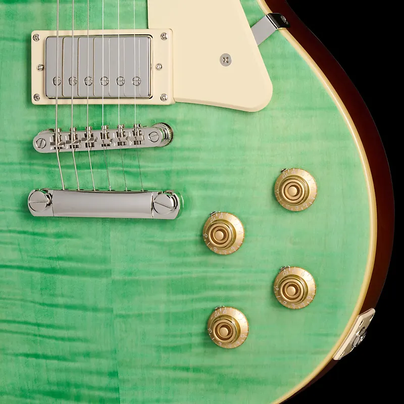 Электрогитара Epiphone Les Paul Standard '50s в цвете Seafoam Green воплощает культовое ощущение и звук легендарных Les Paul 1950-х годов. Корпус из махагони с кленовым топом и потрясающей верхней фанерой AAA Flame Maple обеспечивает богатый, резонансный звук с выдающимся сустейном. Окантованный гриф '59 округлой средней формы C из махагони с длинным шипом грифа и накладкой из лаврового дерева обеспечивает комфортное и классическое ощущение игры. Оснащенная высоко оцененными двумя звукоснимателями Epiphone Probucker и винтажными элементами декора, эта Les Paul Standard предлагает вечную эстетику и мощный звук.