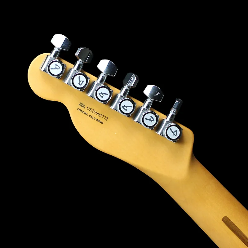 Под капотом, Ultra Звукосниматели II Noiseless Vintage Tele обеспечивают чистый, кристальный звук, резкий twang и мощный грохот без намека на шум. Наш запатентованный переключатель S-1 умно активирует последовательное подключение для еще большего разнообразия тембра. Дополнительные функциональные особенности для дорог включают мост с 6-седельными струнами через корпус с хромированными латунными седлами, блокирующие тюнеры Deluxe, накатанные алюминиевые ручки и однопластинчатый анодированный алюминиевый защитный щиток.