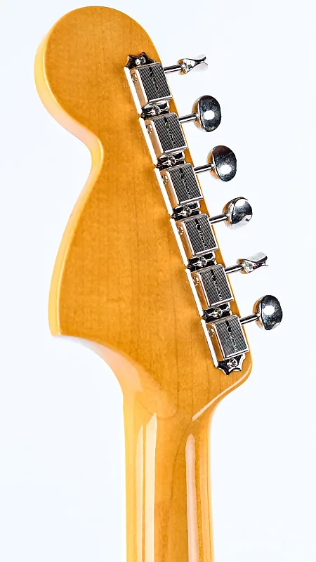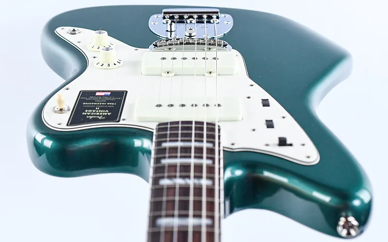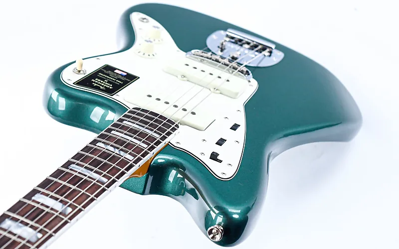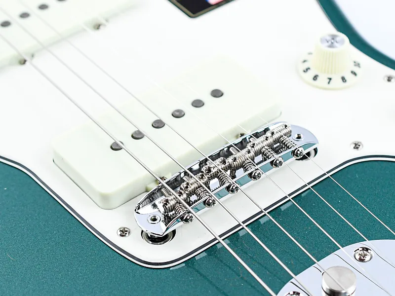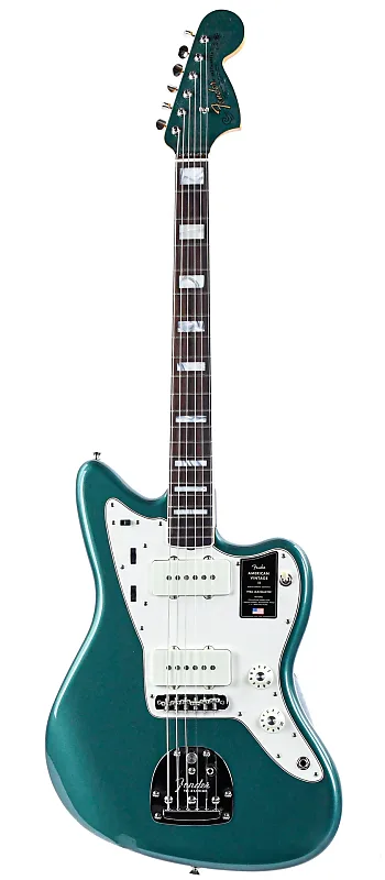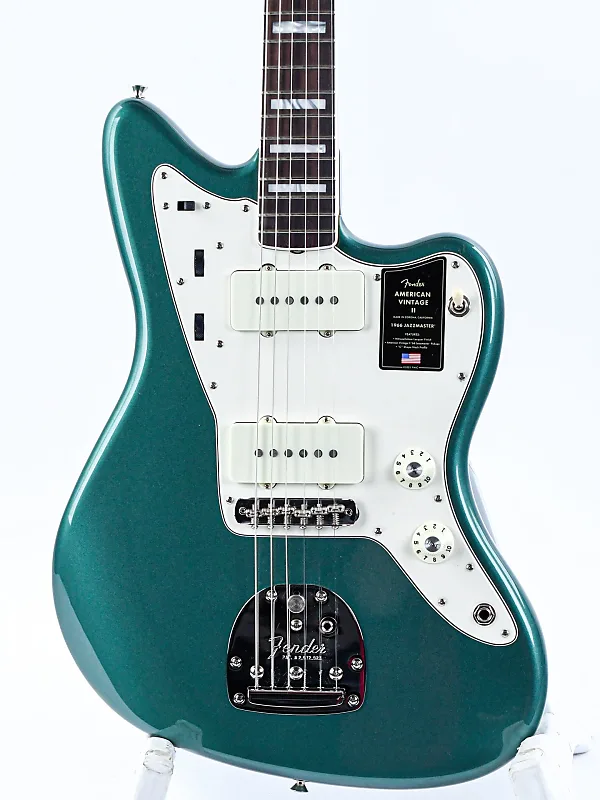 American Vintage II 1966 Jazzmaster оснащен удобным кленовым грифом в форме буквы «С», который играет как мечта, с круглым палисандровым грифом радиусом 7,25 дюйма и винтажными высокими ладами. Характерная для производства в 1966 году, эта гитара предлагается с белой окантовкой грифа, жемчужными блоками, однолинейными тюнерами "Fender Deluxe" и соответствующей окрашенной головкой грифа. Запатентованное «плавающее» тремоло, регулируемый мост с резьбовыми седлами и Pure Пикапы Vintage '66 Jazzmaster, подключенные к фирменным ритм- и лид-схемам, обеспечивают классическое звучание и аутентичное ощущение Fender.