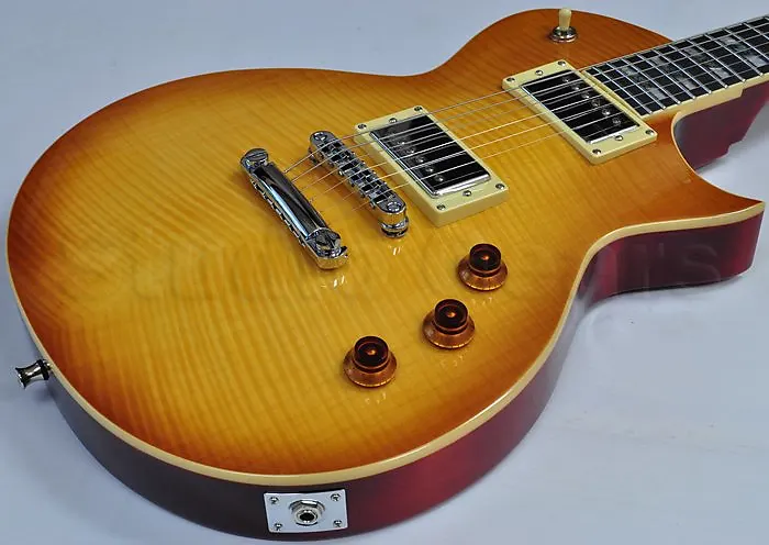 Электрогитара ESP LTD Alex Skolnick AS-1 FM Lemon Burst Signature Конструкция Set-Neck Мензура 24.75” Корпус из махагони Кленовая топ-панель с рисунком Гриф из махагони Накладка на гриф из розового дерева Кость на порожке 43 мм Профиль грифа U 22 лада XJ Хромированная фурнитура Колки Grover Мост и струнодержатель TonePros T.O.M Звукосниматели Seymour Duncan JB (B) / ’59 (N) Отделка: LB (Lemon Burst)