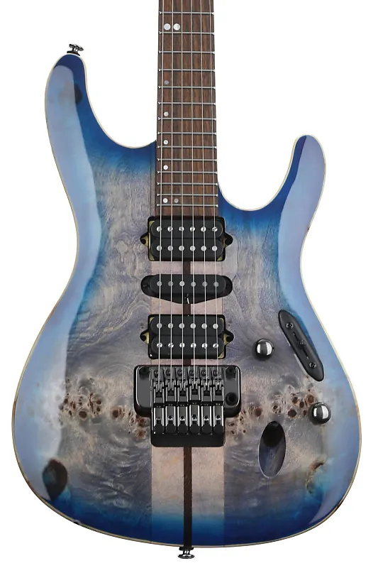 Электрогитара с цельным корпусом, верхняя дека из клена с фигурной текстурой/ореха/кудрявого клена/панги панга, корпус из африканского махагони, гриф из панги панга/клена/ореха/бубинги, грифовая накладка из розового дерева, 2 хамбакер-пикапа и 1 сингл-коил пикaп - цвет Cerulean Blue Burst.