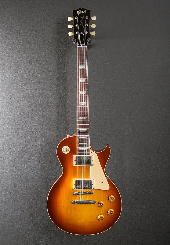 Iced Tea Burst, отделка нитроцеллюлозным лаком VOS, верх из двух частей цельного клена, корпус из цельного махагона, длинное шейк-насадка и конструкция на клее hide, гриф средний С-образной формы 50-х годов из махагона, накладка грифa из индийского палисандра с радиусом 12” с трапециевидными инкрустациями из стареющей целлюлозной нитраты и узкими высокими ладами, длина мензуры 24,75”, ширина порожка 1,69”, незафиксированные звукосниматели Custombucker Alnico III для бриджа и грифа, 3-позиционный переключатель. переключение с помощью регуляторов громкости и тембра для каждого звукоснимателя, безпроводной мост ABR-1 tune-o-matic и легкий алюминиевый стержень-задняя часть, колки Kluson с одной линией/одным кольцом, 8,8 фунта, в комплекте с жестким кейсом Lifton